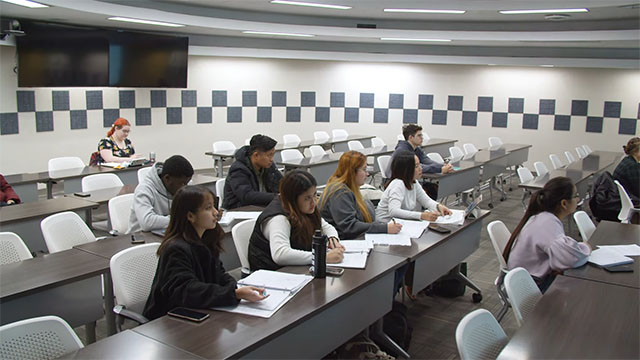 The live launch event included projection mapping on custom screens, dynamic video elements with custom animated graphics, and a multi-camera livestream to the general public. The event was presented simultaneously at a second campus with duplicate staging and screens, while providing the live speakers’ feed from the primary location. Our nine-person crew worked at two sites simultaneously to successfully present and capture the event.